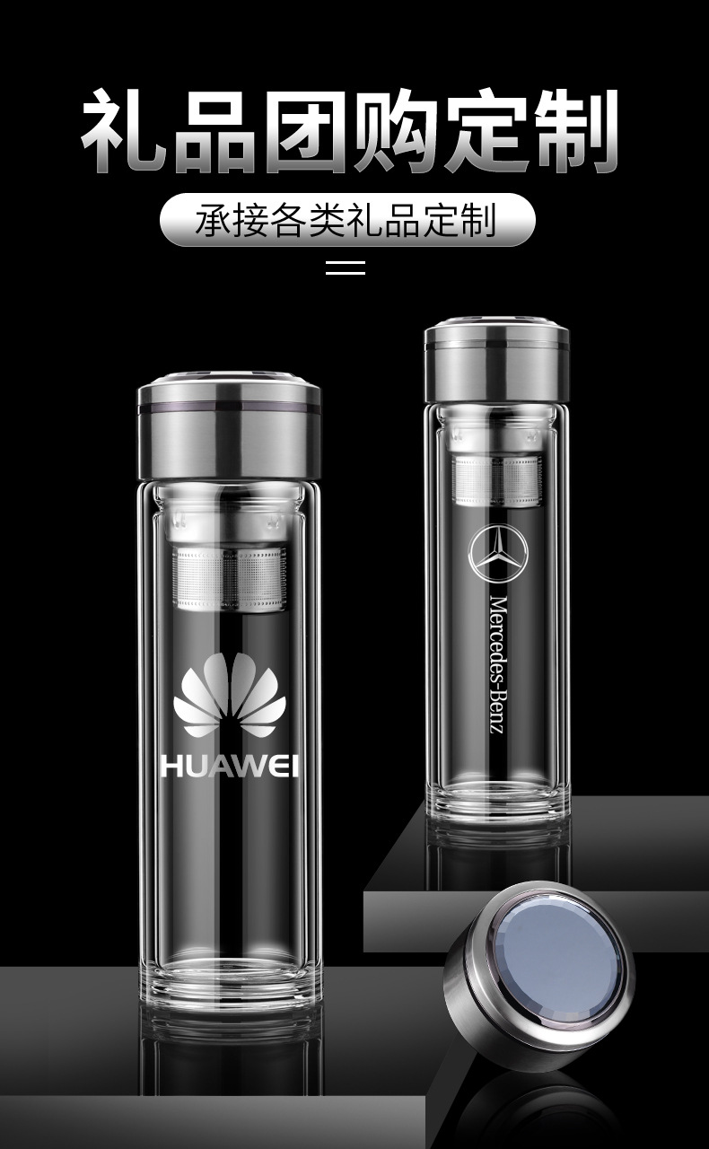 新款高品質雙層玻璃杯高硼硅水杯車載禮品杯定制
