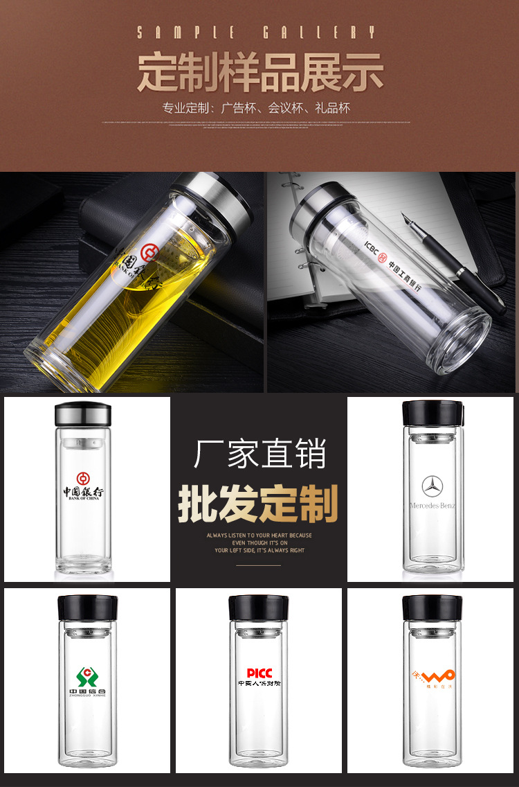 雙層厚底透明玻璃杯商務禮品高硼硅水杯廣告杯批發(fā)定制logo
