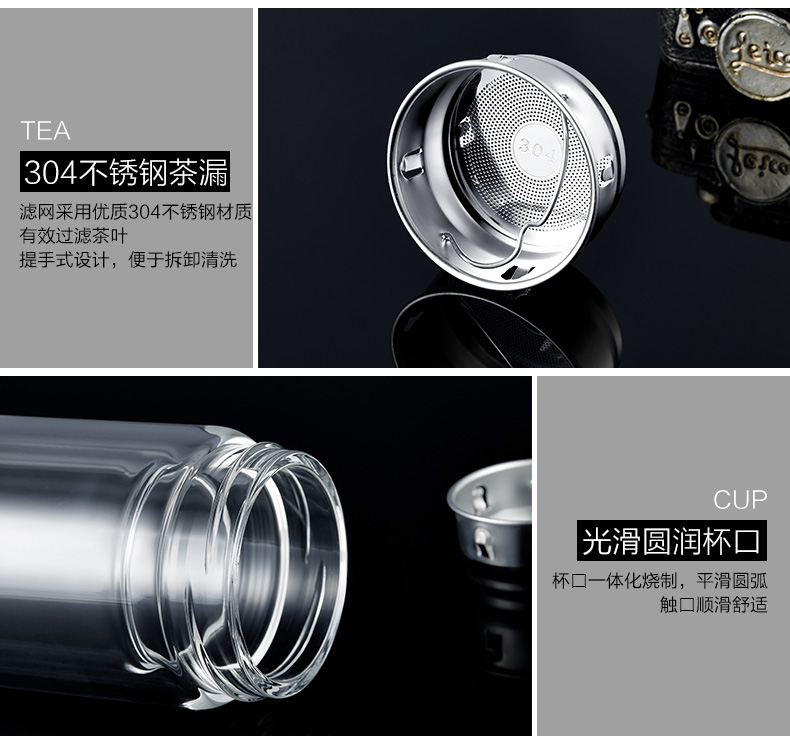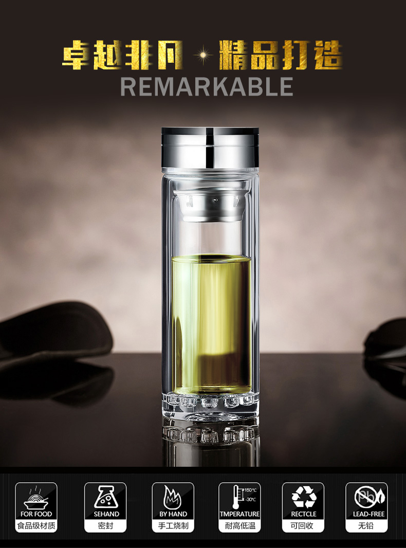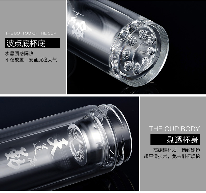 創意雙層波點底玻璃杯帶蓋茶杯批量訂定制印LOGO