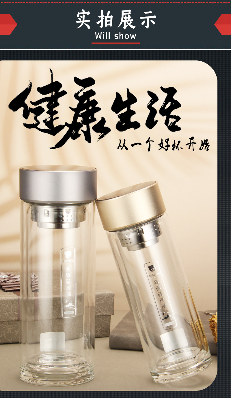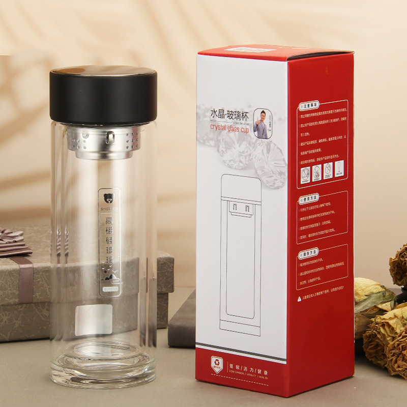 雙層水晶玻璃杯定做logo印字團購開業會議紀念禮品