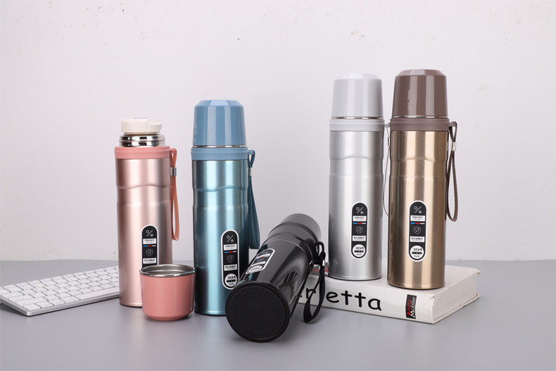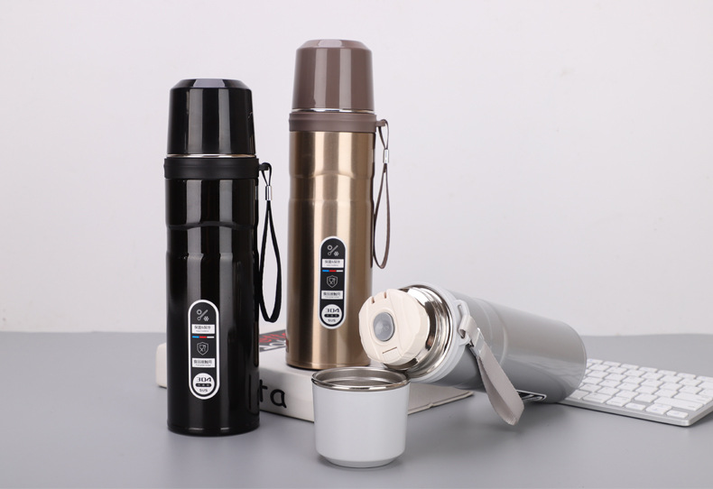新款大容量提繩保溫杯戶外便攜304杯蓋水杯企業年會禮品定制杯子