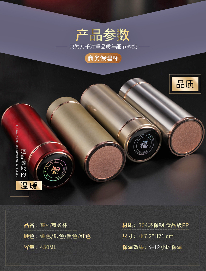 新款304高檔水杯不銹鋼真空保溫杯定制創(chuàng)意商務禮品杯