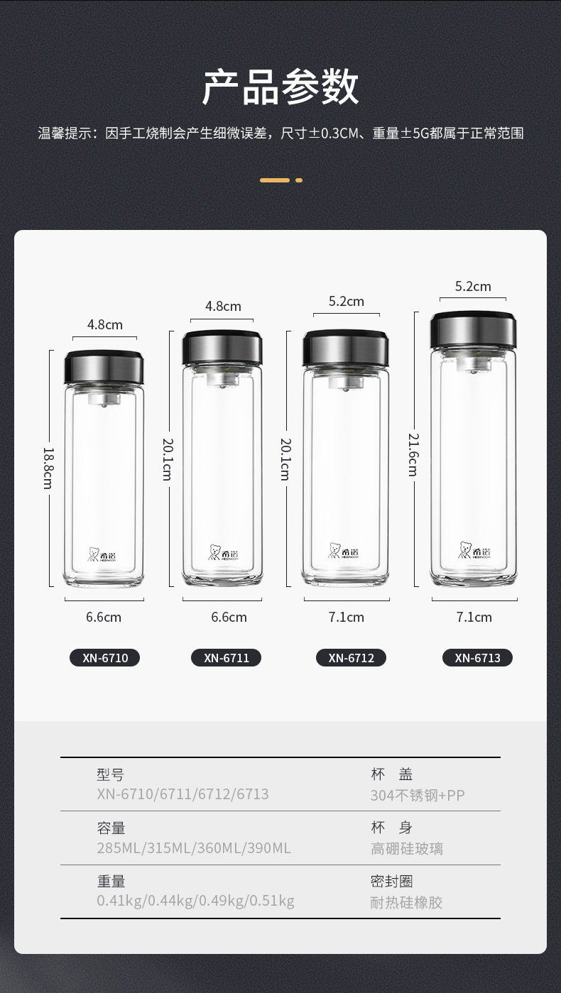 希諾雙層玻璃杯茶水分離水杯男家用透明過濾泡茶杯子高檔送禮商務(wù)