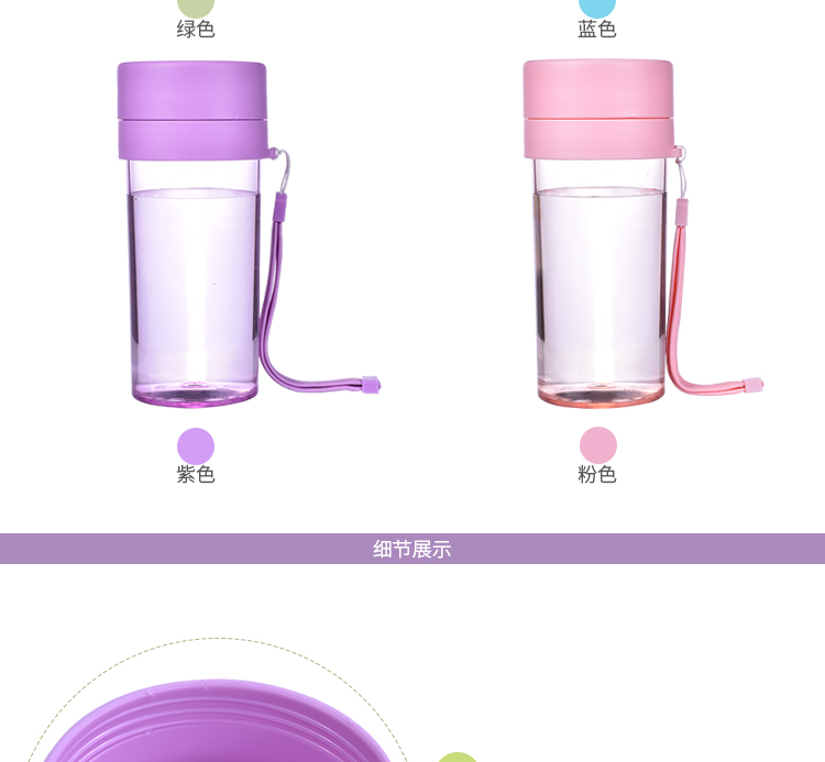 塑料杯子防漏 學(xué)生水杯帶茶隔 運(yùn)動(dòng)水杯trian材質(zhì) 隨身杯帶提繩360ml