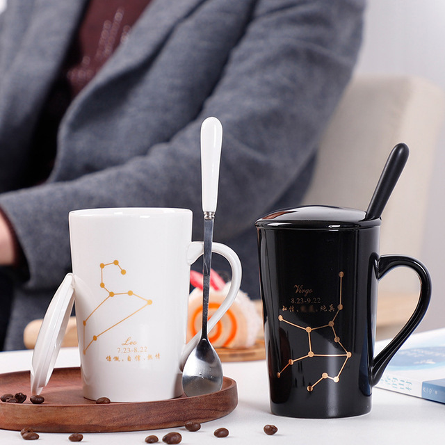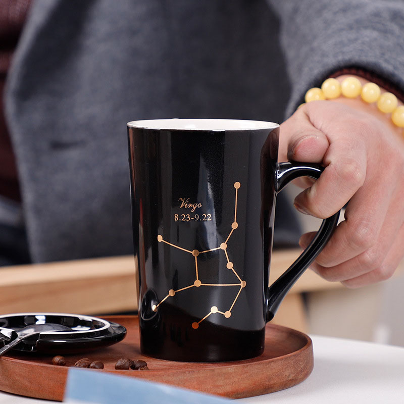 創意十二星座新骨瓷真金 馬克杯可制作陶瓷杯禮盒套裝學生水杯